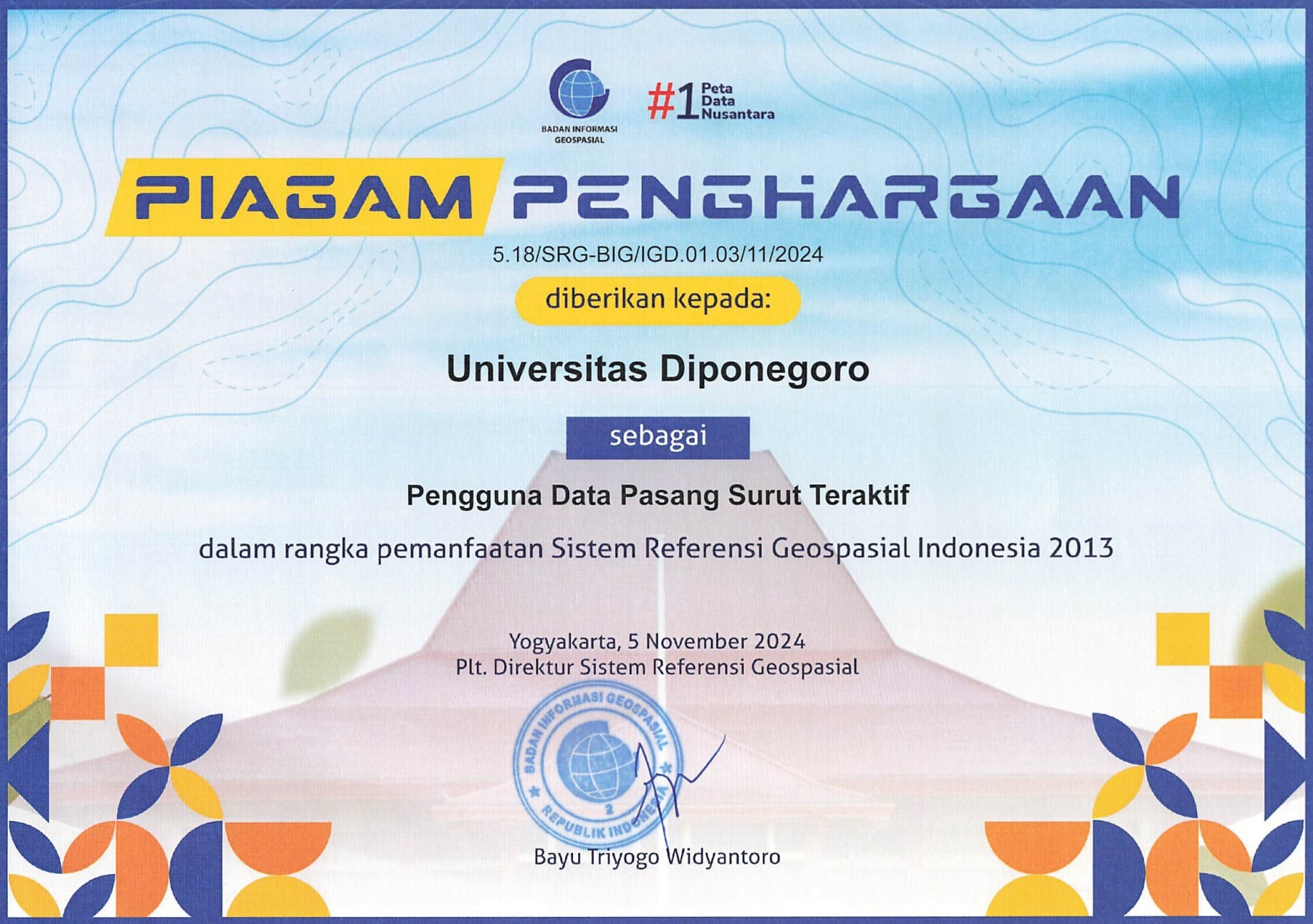Sebanyak lebih dari 140 angkatan 2022 mahasiswa Program Studi S1 Teknik Geodesi UNDIP mengikuti kegiatan ini dengan pendampingan langsung dari Bapak Arief Laila Nugraha, S.T., M.Eng., dan Bapak Bandi Sasmito, S.T., M.T. Untuk mendukung kegiatan praktikum, departemen menyediakan 6 unit receiver GNSS geodetik, 10 unit Total Station, 2 unit theodolit digital, 4 unit level digital, serta 2 unit drone udara untuk akuisisi foto udara. Dalam pengukuran kerangka kontrol, mahasiswa menggunakan stasiun CORS Jepara (CJPR) melalui laman resmi Badan Informasi Geospasial (BIG): www.srgi.big.go.id. Untuk pengukuran kedalaman laut dan penarikan garis pantai, mahasiswa juga memasang sounding pole dan mengakses data pasang surut laut dari laman yang sama. Komitmen penggunaan data dari BIG merupakan bagian dari dukungan Departemen Teknik Geodesi terhadap implementasi Kebijakan Satu Peta. Atas konsistensinya, pada tahun 2024 departemen ini menerima penghargaan sebagai pengguna data pasut teraktif dari BIG.